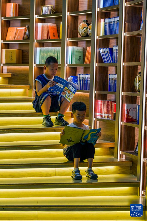 7月8日,小朋友在河北省遵化市新華書店閱讀。(新華社發(fā) 劉滿倉 攝)