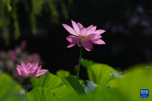 這是7月21日在北京蓮花池公園拍攝的荷花。(新華社記者 鄭煥松 攝)