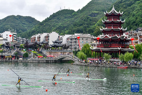 7月22日至23日,2025年民體杯全國獨(dú)竹漂比賽在貴州省黔東南苗族侗族自治州鎮(zhèn)遠(yuǎn)古城舉行。來自浙江、湖北、廣西、廣東、貴州等省區(qū)的10支獨(dú)竹漂代表隊(duì)參加比賽。