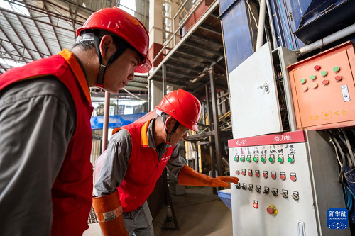 7月24日,在常德市鼎城區(qū)雙橋坪鎮(zhèn)一個(gè)水稻烘干工廠,國(guó)網(wǎng)常德供電公司電力工人在檢查烘干設(shè)備電力供應(yīng)情況。(新華社記者 陳思汗 攝)