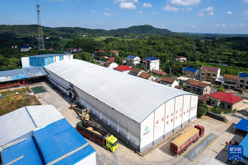 這是7月24日在常德市鼎城區(qū)雙橋坪鎮(zhèn)拍攝的一個(gè)水稻烘干工廠(無(wú)人機(jī)照片)。(新華社記者 周勉 攝)
