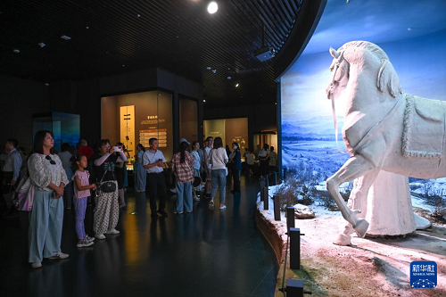 7月30日,游客在內(nèi)蒙古呼和浩特市內(nèi)蒙古博物院新館參觀。(新華社記者 貝赫 攝)