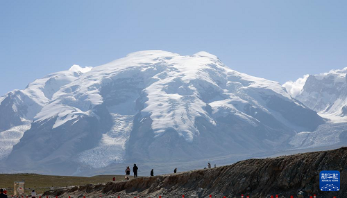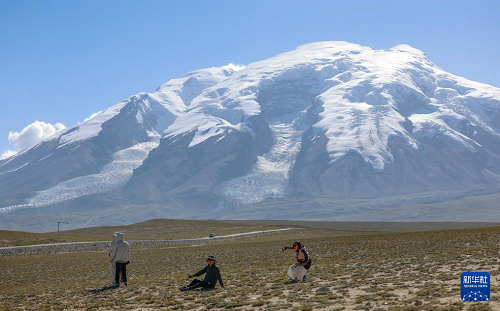 8月3日,游客在新疆塔什庫爾干塔吉克自治縣慕士塔格冰川公園游玩。(新華社記者 王菲 攝)