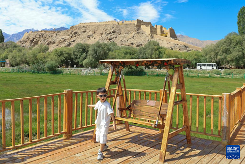 8月2日,一名小游客在新疆塔什庫爾干塔吉克自治縣阿拉爾國家濕地公園游玩。(新華社記者 王菲 攝)