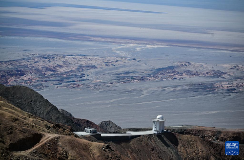 這是7月29日在冷湖鎮(zhèn)賽什騰山拍攝的中國(guó)科學(xué)技術(shù)大學(xué)和中國(guó)科學(xué)院紫金山天文臺(tái)聯(lián)合研制的大視場(chǎng)光學(xué)成像望遠(yuǎn)鏡——墨子巡天望遠(yuǎn)鏡(無人機(jī)照片)。(新華社記者 張龍 攝)