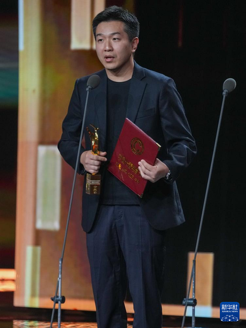 8月28日,在第二十屆中國長春電影節(jié)閉幕式上,《南京照相館》導(dǎo)演申奧獲金鹿獎最佳導(dǎo)演獎。(新華社記者 張楠 攝)