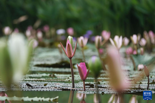 初秋時(shí)節(jié),廣西南寧市人民公園培育的900余株睡蓮陸續(xù)綻放,吸引游人前來觀賞。
