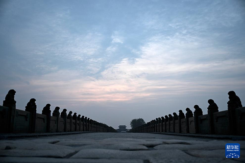9月3日清晨拍攝的北京盧溝橋。(新華社記者 宋彥樺 攝)