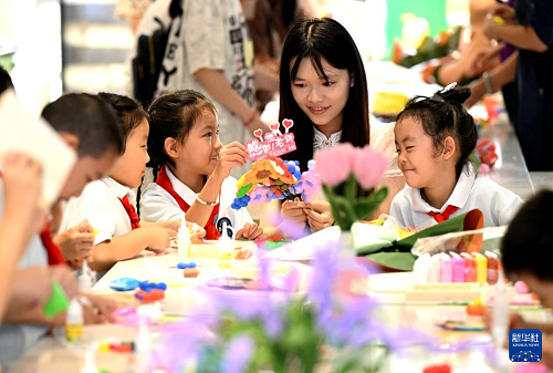 9月9日,在河北省石家莊市柏林莊學(xué)校開展的“黏土做花寄師恩”主題活動中,孩子們用粘土制作花束,為老師送上節(jié)日的祝福。(新華社發(fā) 陳其保 攝)