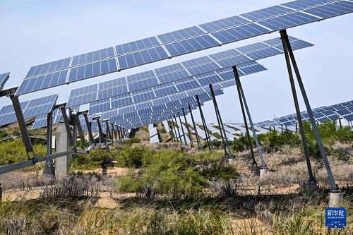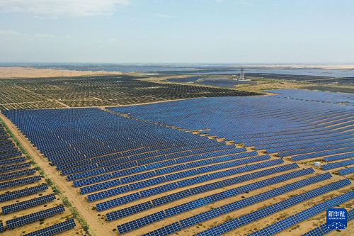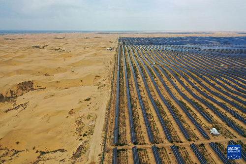 內(nèi)蒙古鄂爾多斯市達(dá)拉特旗境內(nèi)的庫布其沙漠里,一塊塊藍(lán)色光伏板鱗次櫛比、鋪陳排開,將沙海變成綠能涌動的“藍(lán)?!?。近年來,達(dá)拉特旗依托光伏基地建設(shè),推廣應(yīng)用“光伏治沙”模式,實現(xiàn)光伏板上發(fā)綠電,板下治理沙漠生態(tài),既帶動新能源產(chǎn)業(yè)發(fā)展,也促進(jìn)庫布其沙漠治理。