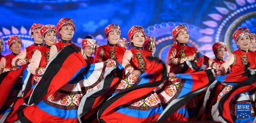 9月28日,農(nóng)民廣場(chǎng)舞表演隊(duì)在山東省鄒平市迎國(guó)慶群眾廣場(chǎng)舞大賽上表演。(新華社發(fā) 董乃德 攝)