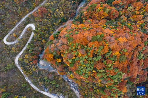 漢中市南鄭區(qū)境內的黎坪國家森林公園秋色(11月5日攝,無人機照片)。(新華社記者 邵瑞 攝)