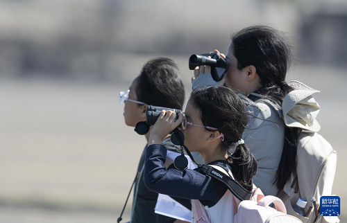 11月9日,泉州市觀鳥學會組織小觀鳥愛好者觀測勺嘴鷸。(新華社記者 魏培全 攝)