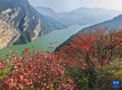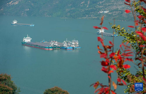 11月16日,船舶行駛在湖北省宜昌市秭歸縣西陵峽水域(無人機(jī)照片)。(新華社發(fā) 王罡 攝)
