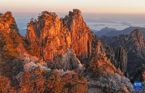 雪后初霽的安徽省黃山風(fēng)景區(qū)銀裝素裹,初升的朝陽(yáng)與奇松、怪石交相映襯,吸引眾多游客前來賞雪觀景。