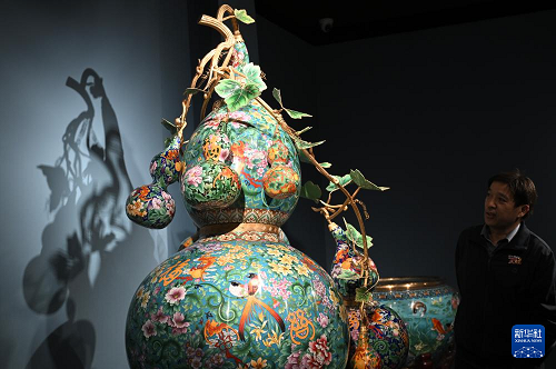 12月15日,觀眾參觀展出的景泰藍(lán)作品《福祿萬代》。(新華社記者 金良快 攝)