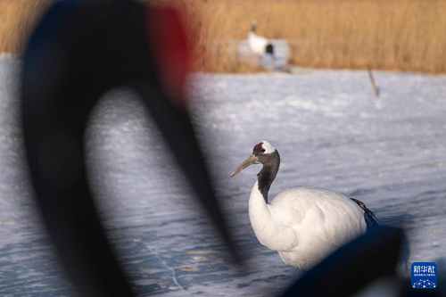 1月21日,游客在黑龍江扎龍國家級自然保護(hù)區(qū)內(nèi)觀看丹頂鶴。(新華社記者 張濤 攝)