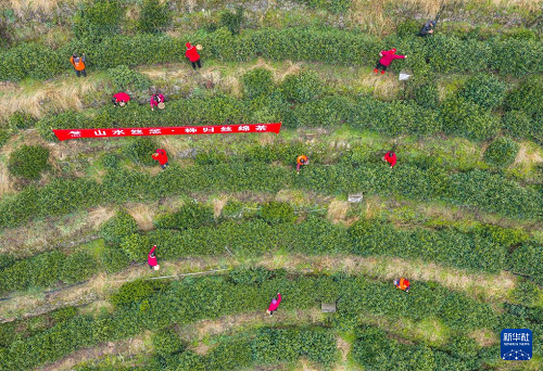 1月29日,湖北省秭歸縣郭家壩鎮(zhèn)王家?guī)X村茶農(nóng)在“絲綿茶1號”茶園采摘茶葉嫩芽。(新華社發(fā) 雷勇 攝)