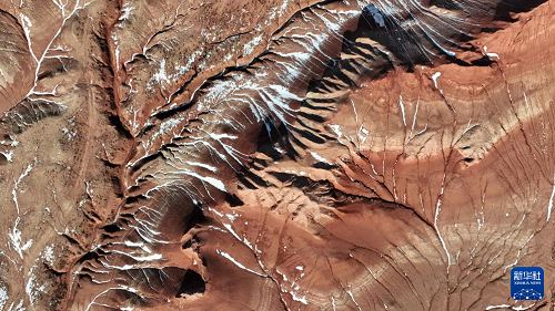 這是1月29日在內(nèi)蒙古烏蘭察布市四子王旗拍攝的紅崖臺地景觀(無人機(jī)照片)。(新華社記者 貝赫 攝)
