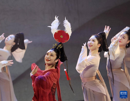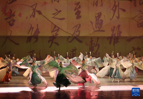 在遼寧大劇院拍攝的《古色·國(guó)寶遼寧》演出現(xiàn)場(chǎng)(4月19日攝)。(新華社記者 李鋼 攝)
