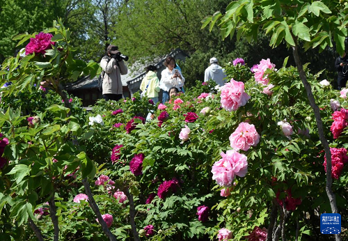 4月20日,游客在圓明園拍攝盛開的牡丹。(新華社記者 羅曉光 攝)