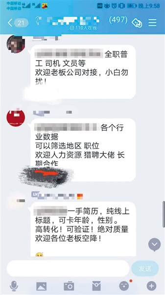 QQ群內(nèi)叫賣簡(jiǎn)歷的信息。QQ截圖