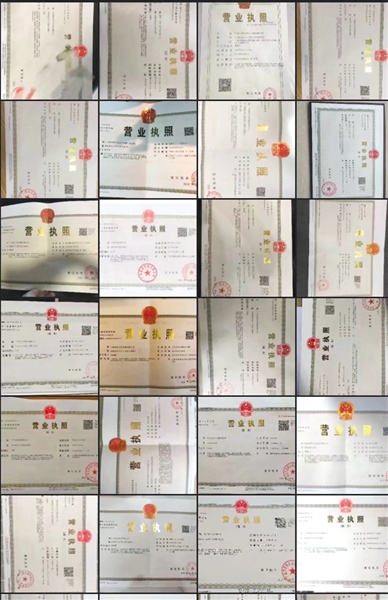 有商家向記者展示自己擁有的營(yíng)業(yè)執(zhí)照,這些公司均可在招聘網(wǎng)站注冊(cè)賬號(hào),每個(gè)售價(jià)在120元-330元。受訪者供圖