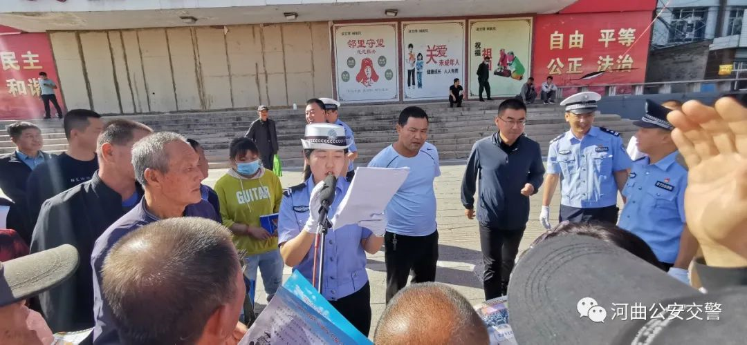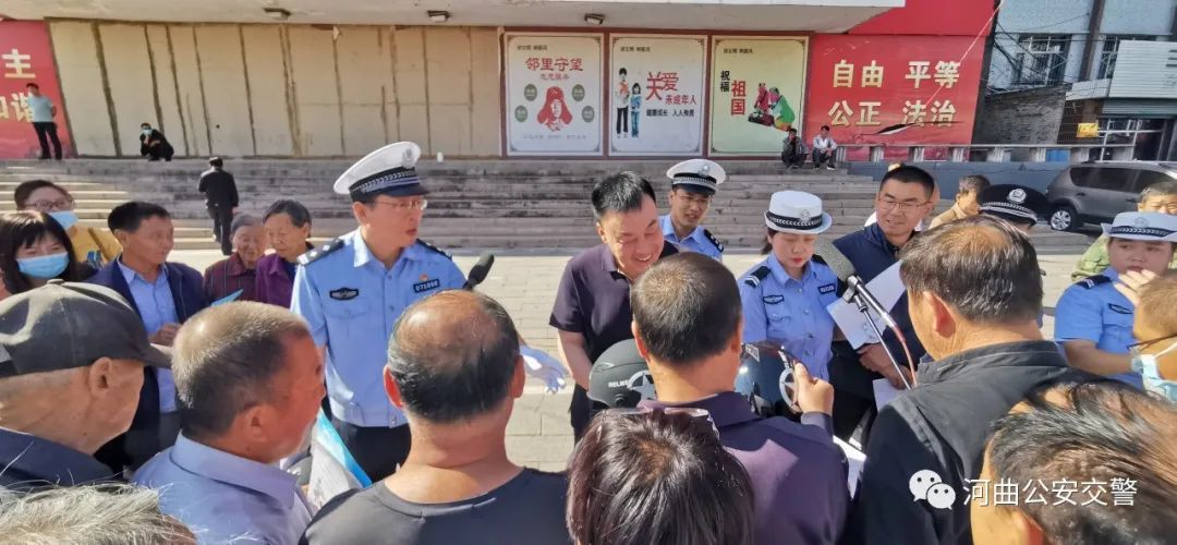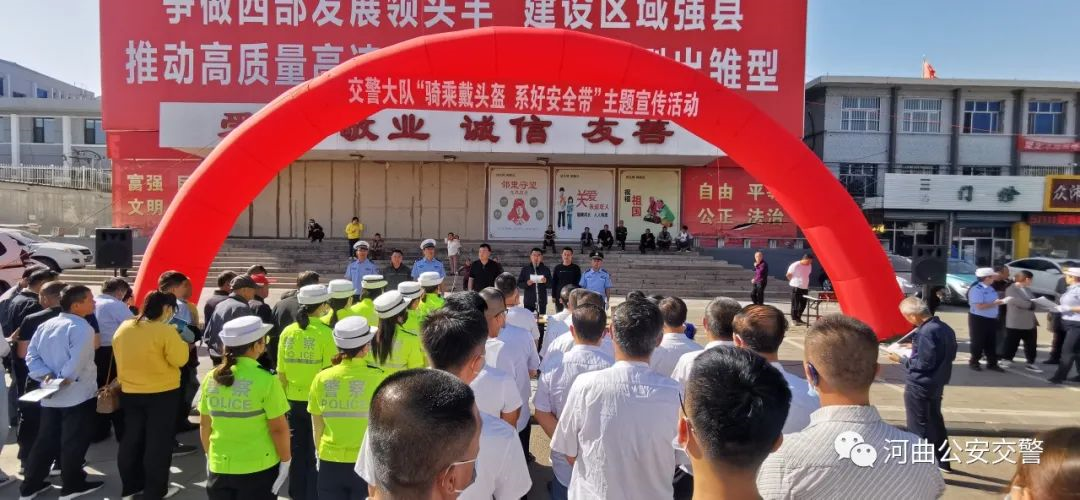 為進一步提升摩托車、電動自行車騎乘人員和機動車駕乘人員安全防護意識,降低交通事故死亡風險,保護人民群眾生命財產(chǎn)安全,9月8日上午,河曲縣公安局交警大隊在政府門前廣場開展了“騎乘戴頭盔 系好安全帶”主題宣傳活動。縣政府副縣長、公安局局長杜煒出席并作講話,大隊長于建杰、教導(dǎo)員李喜峰參加了活動,活動由政府辦副主任竇明軒主持,大隊部分民輔警以及公交、出租駕駛員共計50余人參加。