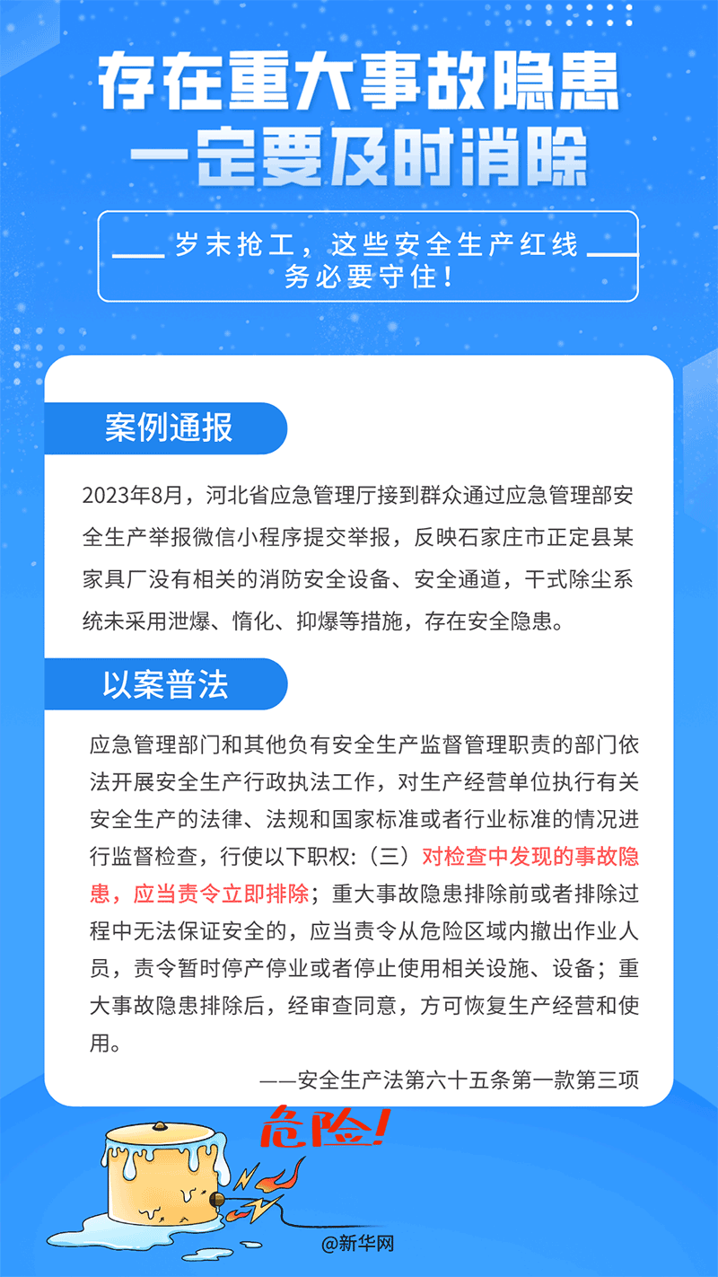 12月1日至7日是第七個(gè)安全生產(chǎn)法宣傳周,又恰逢歲末年初,生產(chǎn)經(jīng)營(yíng)建設(shè)活動(dòng)進(jìn)入旺季,一些企業(yè)搶工期、趕進(jìn)度,人們思想管理容易產(chǎn)生松懈麻痹的疲勞期,也是生產(chǎn)事故的高發(fā)期。以下是近期各地通報(bào)的部分案例,希望大家銘記安全,警鐘長(zhǎng)鳴!
