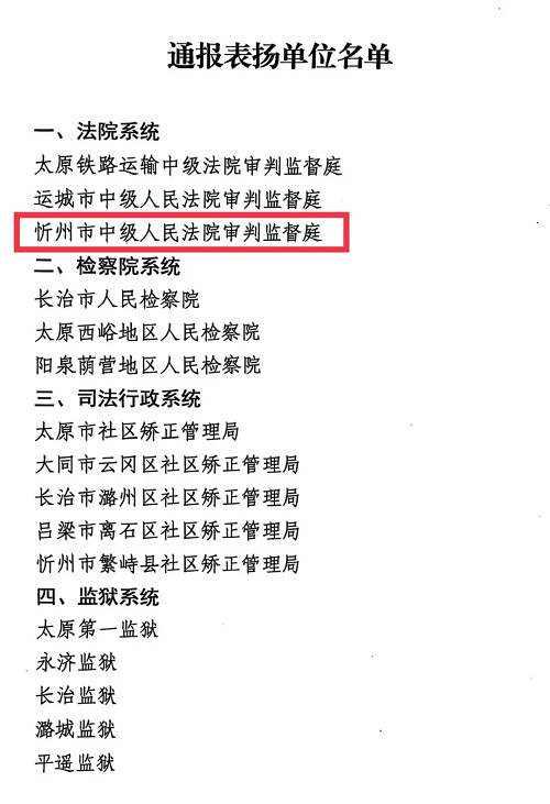 | 喜報(bào)!忻州中院審判監(jiān)督庭獲評全省減假暫工作表現(xiàn)突出單位 |