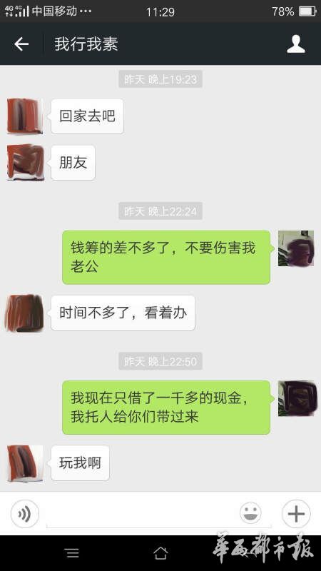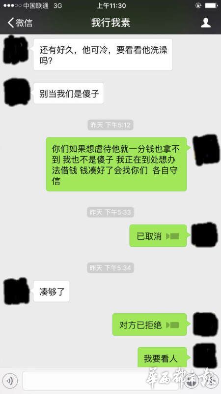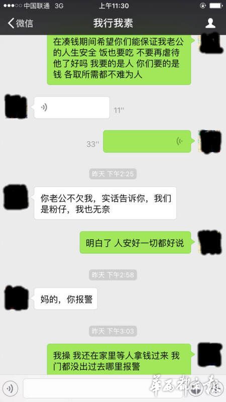 趙婷用微信與丈夫聯(lián)系,回復的人卻變成了“綁匪”,索要6萬元的贖金,否則撕票。趙婷說,一定會湊錢,但要保證王江的人生安全,不能虐待,各取所需都不為難人,“綁匪”卻一直逼問著錢的下落,并煞有其事地強調“不要報警”。