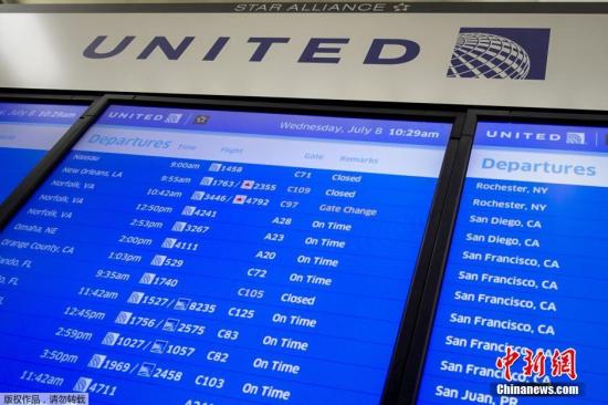資料圖。2015年7月8日,美國聯(lián)合航空公司電腦系統(tǒng)出現(xiàn)故障,導(dǎo)致其在全美所有機(jī)場的航班停飛約2小時。