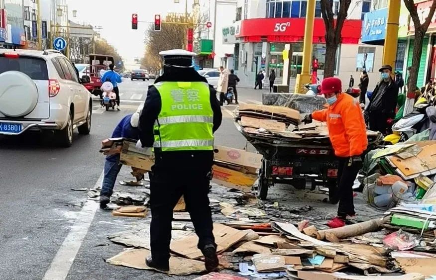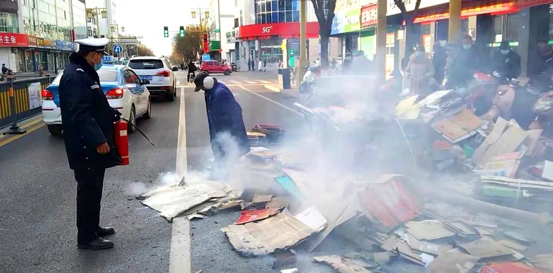 由于撲救及時(shí),三輪車(chē)上只有小部分紙片及雜物被燒毀,車(chē)輛受損不大。執(zhí)勤交警再三確認(rèn)電動(dòng)三輪車(chē)火險(xiǎn)徹底消除后,又重新投入到執(zhí)勤工作當(dāng)中去。