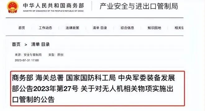 7月31日中國(guó)宣布強(qiáng)化無(wú)人機(jī)出口管制