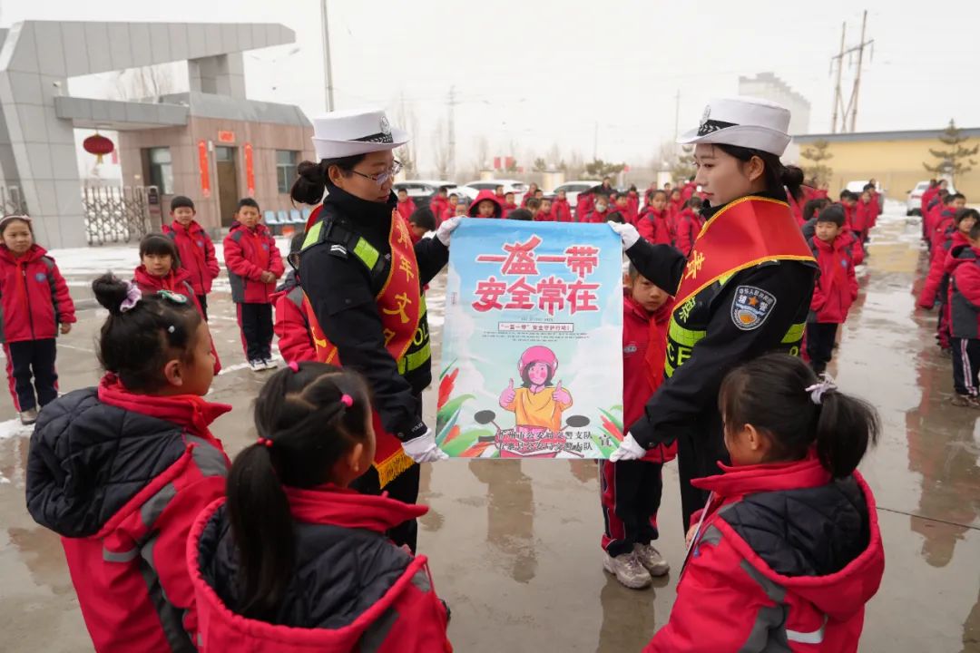 活動(dòng)中民輔警通過(guò)演示交通手勢(shì)指揮操,展示“一盔一帶”交通安全海報(bào),發(fā)放交通安全宣傳彩頁(yè)等形式,使學(xué)生們理解并熟記基本的交通安全知識(shí),增強(qiáng)自身“知危險(xiǎn)、會(huì)避險(xiǎn)”的能力,做到遵章守法,文明出行。
