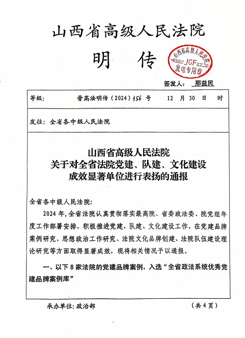 積極利用忻州優(yōu)質(zhì)紅色資源,注入法院文化,作為堅定理想信念、加強黨性修養(yǎng)的生動教材,組織黨員干警到西柏坡紀念館、省黨風廉政教育基地、徐向前故居等地接受革命傳統(tǒng)教育,以參觀主題展館、聆聽紅色故事、重溫入黨誓詞、講授紅色黨課等方式開展紅色教育實踐活動,在實物、實景、實事中注入強大的精神動力。打造特色文化陣地,建成黨建、家事、傳統(tǒng)三個主題文化長廊,引導(dǎo)干警學黨史、知黨情、感黨恩、跟黨走。依托“兩微一網(wǎng)”、抖音、快手等新媒體平臺,積極開展法院文化宣傳,拍攝制作的8部法治微電影、微視頻先后榮獲5個國家級和15個省級表彰獎項,中院天平號被最高院評為“十佳天平號”“百佳新媒體”。忻州中院被指定為“忻州市青少年法治教育基地”,被省委宣傳部、省司法廳評為“省級法治宣傳教育基地”,被省社科聯(lián)命名為“山西省社會科學普及宣傳基地”。用心用情、精準精細做好老干部工作,念好“居、學、榮、依、樂、為”六字訣,《黨建引領(lǐng)“夕陽紅”,夕陽點亮“黨建紅”》典型經(jīng)驗在全市老干部工作會議上作了交流。