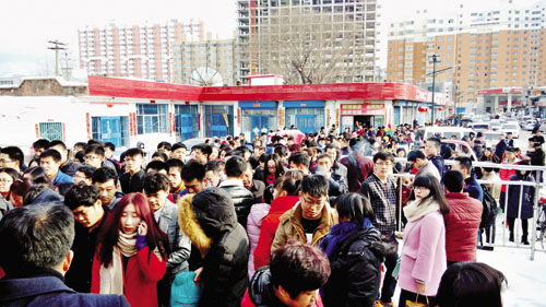 2月13日,一場(chǎng)大雪讓五寨縣火車站變得擁擠起來(lái)。當(dāng)日是春節(jié)假日的最后一天,不少回家過年的外地工作者返程,恰巧前一天縣城迎來(lái)一場(chǎng)大雪,造成公路交通不便,使得更多的人選擇了乘火車返程。但臨時(shí)改變出行方式讓這些人很難買到票。(許凈 攝)