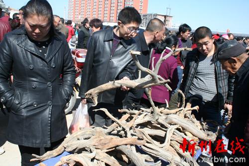 3月13日,原平市集貿市場上農民正在賣形態(tài)各異廢棄的柏樹木根枝 他們變廢為寶促增收,很受市民喜愛收買。該市,采取多措并舉積極引導農民增收致富,加快奔小康步伐。(趙月仁 攝)