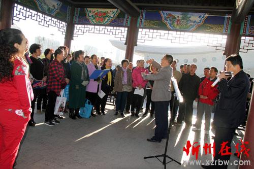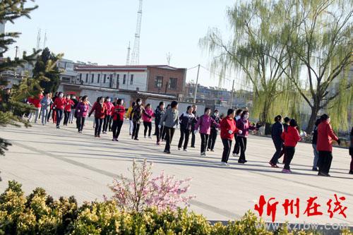 4月8日。原平市市民們正在環(huán)境優(yōu)美的范亭廣場(chǎng)上,彈拉琴唱,強(qiáng)身健體歌聲飄揚(yáng)樂(lè)悠悠,享受著春天氣息和如今好生活。(趙春曉 攝)