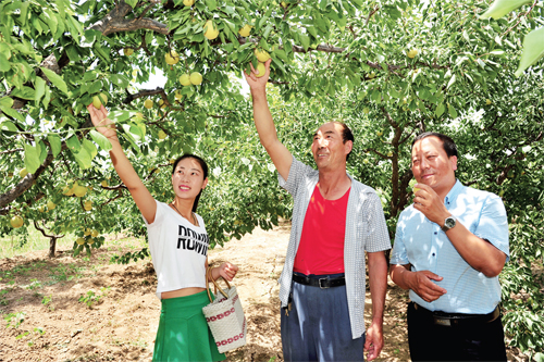 夏至?xí)r節(jié),代縣胡峪鄉(xiāng)望臺(tái)村的1500 畝白水杏喜獲豐收,果農(nóng)們正在起早貪黑收獲勞動(dòng)果實(shí),并通過(guò)代縣惠生活微信平臺(tái)推銷(xiāo)產(chǎn)品。該村作為全縣干鮮果經(jīng)濟(jì)林基地,尤其盛產(chǎn)優(yōu)質(zhì)白水杏,去年全村僅干鮮果一項(xiàng)就收入640 萬(wàn)元,人均純收入6000 余元,真正實(shí)現(xiàn)了“杏”福敲門(mén),精準(zhǔn)脫貧。(石俊文 劉睿 攝)