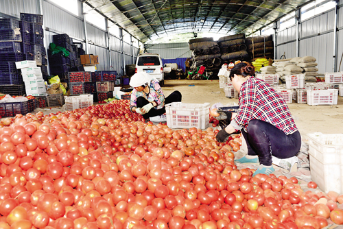 6 月22 日,定襄縣受祿鄉(xiāng)富達農(nóng)業(yè)合作社的農(nóng)戶們將采摘的西紅柿裝筐準(zhǔn)備外銷。近年來,定襄縣立足自然資源優(yōu)勢,積極引導(dǎo)農(nóng)民調(diào)整產(chǎn)業(yè)結(jié)構(gòu),大力發(fā)展設(shè)施農(nóng)業(yè),促進了農(nóng)業(yè)增效、農(nóng)民增收。(張玉虎 攝)