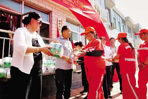 領(lǐng)到粽子的環(huán)衛(wèi)工人們高興不已,市容五所的環(huán)衛(wèi)工人白新云告訴記者:“我覺得很開心,一來過節(jié)有了愛心粽子吃;二來企業(yè)送粽子給環(huán)衛(wèi)工人,是對我們工作的體諒和支持,說明大家看到了我們的付出?,F(xiàn)在環(huán)衛(wèi)工作得到越來越多人的關(guān)注,大家齊心協(xié)力為城市的整潔而努力,我們的家園一定會(huì)越來越美麗。”下圖為工作人員為環(huán)衛(wèi)工人分發(fā)粽子小禮盒(實(shí)習(xí)記者 許凈)