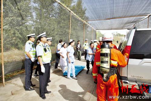 本報(bào)訊 9月22日上午,為進(jìn)一步提高公安交警部門(mén)應(yīng)對(duì)和處置突發(fā)重特大道路交通事故的能力和相關(guān)單位的協(xié)調(diào)配合能力,原平市舉行了道路交通事故應(yīng)急演練。本次演練由原平市政府主辦,該市公安交警、衛(wèi)生、消防、民政、安監(jiān)、交通、環(huán)保等部門(mén)協(xié)辦。 演練假設(shè)當(dāng)日上午10時(shí)10分在S206南屯隧道入口處,一輛小型汽車(chē)與一輛?;愤\(yùn)輸車(chē)追尾,此次交通事故造成兩人死亡、1人受傷,汽油泄露,隨時(shí)有爆炸的危險(xiǎn)……110指揮中心接到群眾報(bào)警后,立即下達(dá)事故救援指令,并通知“120”醫(yī)療急救中心、“119”消防大隊(duì),同時(shí)將事故情況向交警大隊(duì)進(jìn)行了匯報(bào),請(qǐng)示該市道路交通安全委員會(huì)啟動(dòng)重特大交通事故應(yīng)急救援預(yù)案。民警趕赴事故現(xiàn)場(chǎng)后,各項(xiàng)救援工作有條不紊進(jìn)行?,F(xiàn)場(chǎng)救援組立即展開(kāi)受傷人員救護(hù)等工作,協(xié)助醫(yī)療隊(duì)伍做好傷員救治及傷員轉(zhuǎn)送工作;現(xiàn)場(chǎng)勘查組著手開(kāi)展了現(xiàn)場(chǎng)勘查、調(diào)查取證等工作;外圍警戒組對(duì)現(xiàn)場(chǎng)中心路段進(jìn)行交通管制,在不同路段堵截分流無(wú)關(guān)車(chē)輛、人員;善后處理組拖移事故車(chē)輛、移送尸體、對(duì)事故現(xiàn)場(chǎng)進(jìn)行了清理。 經(jīng)過(guò)30分鐘的緊張救援,演練活動(dòng)圓滿完成。通過(guò)此次實(shí)戰(zhàn)演練,各單位、各部門(mén)對(duì)重特大道路交通事故的應(yīng)急處突能力和協(xié)作水平進(jìn)一步提高,達(dá)到了演練的預(yù)期效果。(魯明強(qiáng) 楊順田) (責(zé)任編輯:盧相汀) |