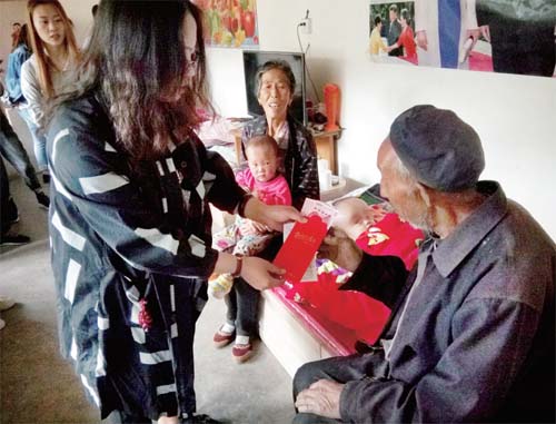 郎眉栓夫婦倆生活在黑山溝村,靠種地為生,有一顆仁愛之心。他們夫婦倆從2011年開始收養(yǎng)幾名因天生殘疾被父母遺棄的孩子。2017年深圳建輝基金會攜手老醯兒公益團體,在山西開展致敬行善者(尋找困境中的行善者)慈善活動,繁峙縣青年社愛心志愿者將郎眉栓夫婦的事跡作了詳細介紹,經(jīng)深圳建輝基金會評審,決定對郎眉栓夫婦進行資助。繁峙縣青年社愛心志愿者們帶著建輝基金會對老人的誠摯慰問以及價值200元的糧油米面慰問品來看望老人,該社負責(zé)人親手將建輝基金會資助老人的1000元慰問金遞交到老人手中,向老夫婦的行善事跡致敬。