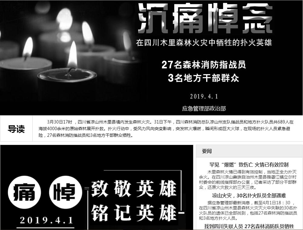 為悼念“逆火英雄”,應(yīng)急管理部開通了祭奠頁面,網(wǎng)站內(nèi)附有30名撲火隊(duì)員的姓名、職務(wù)及照片等信息。網(wǎng)頁下方的統(tǒng)計(jì)顯示,截至發(fā)稿,已有307余萬人次向他們獻(xiàn)花。