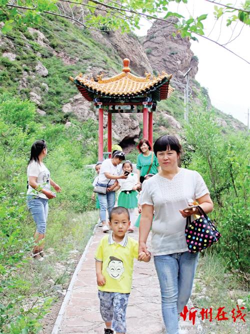 6月1日,定襄縣七巖山附近南王村幼兒園的孩子們在表演完節(jié)目后,與父母在猿頭山景點(diǎn)涼亭前游覽、拍照。這些孩子的父母大多外出打工,平時(shí)與孩子聚少離多,和父母一起親近大自然成了孩子們今年“六一”最大的快樂。