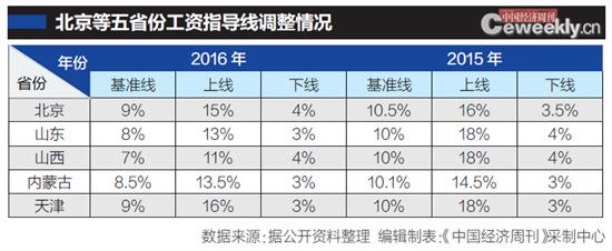 企業(yè)工資指導線(下稱“工資指導線”)從1997年出臺,至今已20年。按照慣例,各省份在每年上半年就會發(fā)布。不過,截至7月20日,《中國經濟周刊》記者發(fā)現,僅有天津、北京、山東、山西、內蒙古等五省份發(fā)布了2016年工資指導線,并且多是下調基準線。