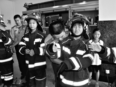 “叔叔,這是干什么用的?” 樂樂拿起一個面罩轉(zhuǎn)了幾圈。“這個叫防毒面具,可以防止毒氣、煙霧進入鼻子和嘴巴?!币幻绬T戰(zhàn)士告訴樂樂,在發(fā)生火災(zāi)時,為了防止毒氣、煙霧吸入口中,小朋友們可以用濕毛巾代替,把濕毛巾對折捂住嘴巴和鼻子?!懊泶驖窈笞詈蒙晕Q一下,讓毛巾不滴水,這樣防毒的效果最好?!?/p>