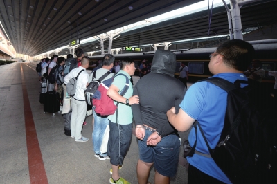8名嫌疑人被押解回京。京華時(shí)報(bào)記者 趙思衡 攝
