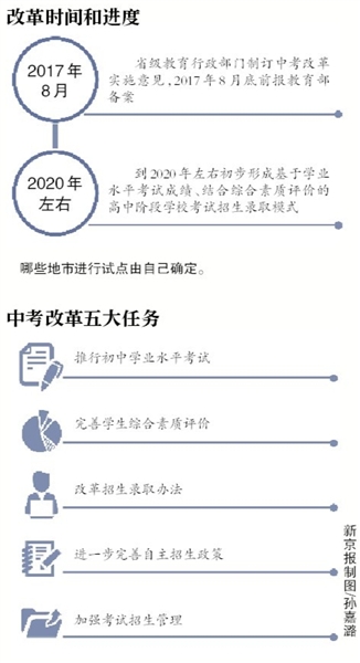 根據(jù)安排,省級(jí)教育行政部門(mén)負(fù)責(zé)制訂中考改革實(shí)施意見(jiàn),并于2017年8月底前報(bào)教育部備案。同時(shí),綜合改革試點(diǎn)將從2017年之后入學(xué)的初中一年級(jí)學(xué)生開(kāi)始實(shí)施,目前初中在校生、非試點(diǎn)地市仍執(zhí)行原來(lái)的考試招生辦法。